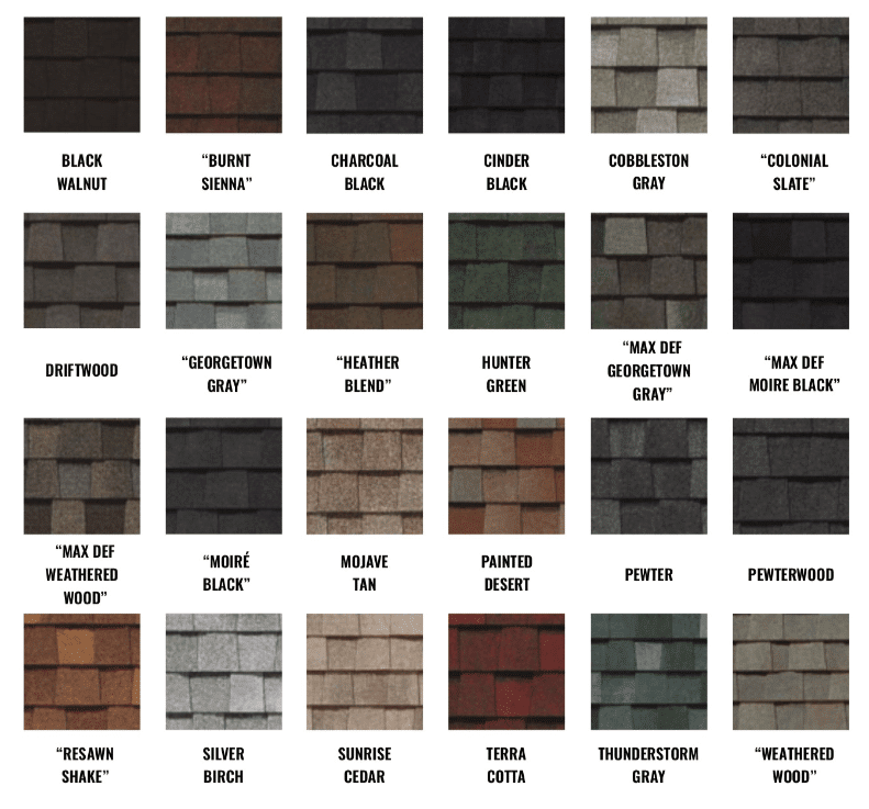 roof shingle color options